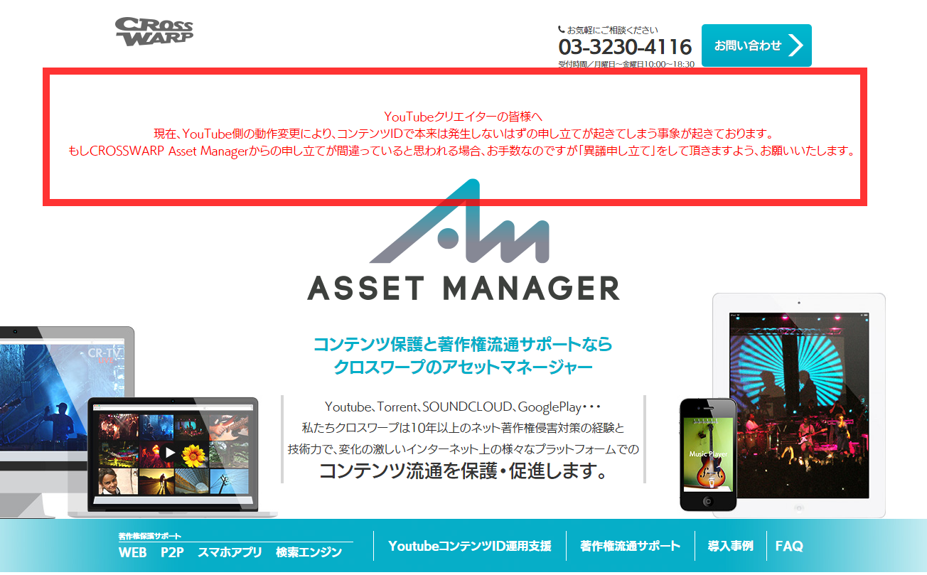 According to a report from the management company, although the changes to YouTube's internal system have been reversed, some of the sound sources published on this site are experiencing a problem where copyright infringement complaints are automatically filed when the video is registered.